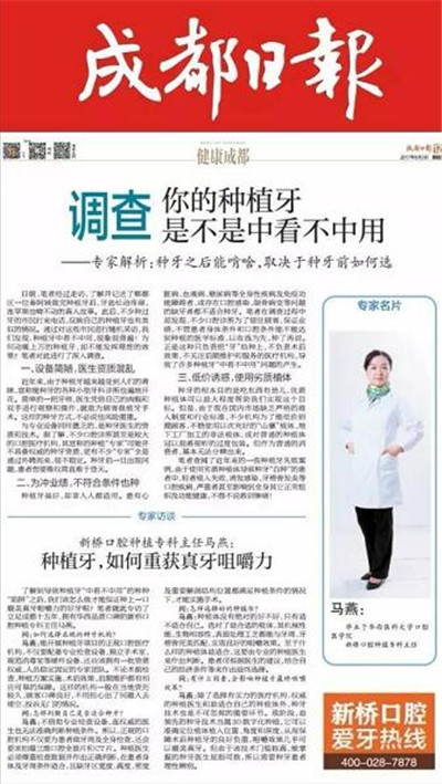 日前,筆者經過走訪,了解并記述了郫都區一位秦阿姨做完種植牙后,牙齒松動疼痛,連蘋果也啃不動的真人故事。此后,不少種過牙的市民打來電話,反映自己的種植牙也有類似的情況。通過對這些市民進行隨機采訪,我們發現:種植牙中看不中用,現象很普遍!為何動輒上萬的種植牙,卻不能發揮理想的效果?筆者對此進行了深入調查。