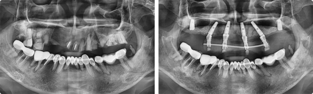 葉宏解釋了這樣做的原因:標(biāo)準(zhǔn)的無牙頜種植上頜一般是6-8顆,下頜4-6顆,如果口腔條件允許,他會(huì)建議患者至少要種六顆,這樣牙槽骨受力更加均勻。如果只種四顆,后期的維護(hù)成本相對(duì)較高。分兩步走的治療方案雖然麻煩一些,但保障了種植牙的遠(yuǎn)離穩(wěn)定性。