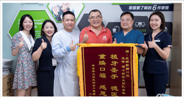 從澳洲飛回成都新橋口腔種牙,李叔叔說(shuō)自己實(shí)現(xiàn)了品質(zhì)、效率和性價(jià)比三贏!為此,他親自送來(lái)一面自己題詞的錦旗,“植牙圣手,德醫(yī)雙馨!”他說(shuō):“牙齒種好了,感覺(jué)好極了!非常感謝王鋒總監(jiān)團(tuán)隊(duì),讓我從此再享口福!”