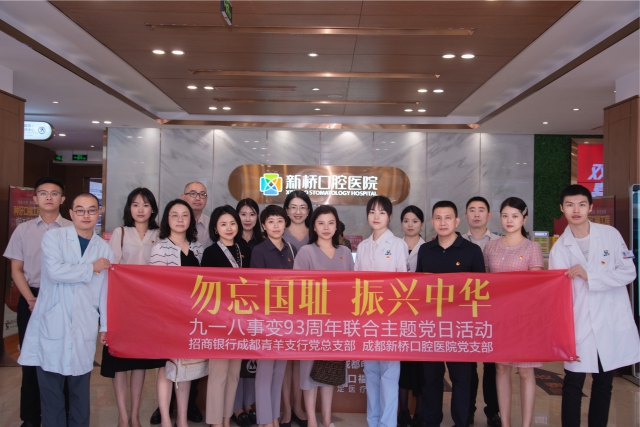 9月18日,成都新橋口腔醫(yī)院黨支部聯(lián)合招商銀行成都青羊支行黨總支部舉辦了“銘記'九一八’聯(lián)合主題黨日活動”。