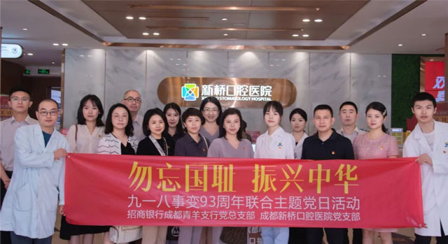 9月18日,在“九一八事變”93周年之際,成都新橋口腔醫(yī)院黨支部聯(lián)合招商銀行成都青羊支行黨總支部舉辦了“銘記‘九一八’聯(lián)合主題黨日活動”。