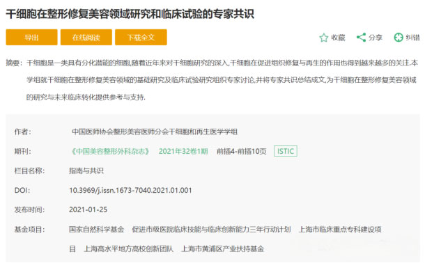 干細(xì)胞在整形修復(fù)美容領(lǐng)域研究和臨床試驗(yàn)的專家共識(shí)(2021)