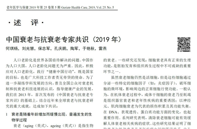 2019年,我國《老年醫(yī)學(xué)與保健》雜志發(fā)布了《中國衰老與抗衰老專家共識(shí)(2019年)》。該共識(shí)提到,抗衰老是衰老基礎(chǔ)研究的應(yīng)用出口,實(shí)現(xiàn)健康老齡化的重要策略??顾ダ系牟呗园ǎ呵宄ダ霞?xì)胞、服用藥物、限制飲食、干預(yù)腸道菌群(腸道微生物)、補(bǔ)充干細(xì)胞和活性因子等方面。人體衰老與組織中的間充質(zhì)干細(xì)胞衰老密切相關(guān),通過補(bǔ)充細(xì)胞或活性因子,有可能減輕衰老的危害,改善中老年健康,是一類科學(xué)抗衰老的策略。