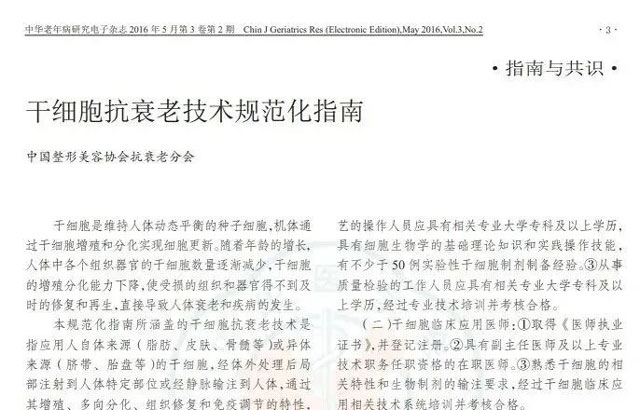 干細(xì)胞抗衰老規(guī)范化指南(2016)