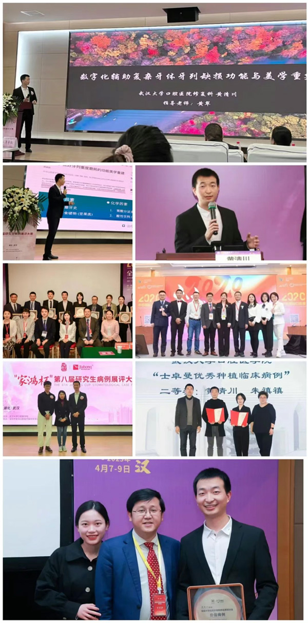 在持續精進專業技術的道路上,黃清川始終保持著進取姿態。為掌握前沿種植修復技術,他積極參與國內外種植課程與學術交流,力求在技術和理念上同步提升。這種持續學習也讓他在多個專業賽事中脫穎而出:研究生期間他先后獲得中華醫學會第十八次醫學美容學術大會、首屆牙頜面美學病例評選暨研討會“價值病例”、“優秀病例”、“人氣病例”;第八屆“家鴻杯”研究生病例大賽一等獎;武漢大學士卓曼臨床種植病例獎學金二等獎;第二屆義獲嘉易美全瓷比賽全國三十強第六名;多次參與國內大型病例交流匯報、壁報交流等。