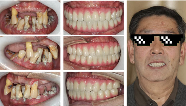 曾經,一位青海州縣上生活的患者因重度牙周炎無法及時獲得恰當的治療,久而久之導致多顆牙缺失伴隨著余留牙齒的松動,嚴重影響日常進食。來到新橋口腔西寧院區后,黃清川詳細詢問患者病史、進行口內外檢查后發現,患者余留牙齒都失去保留意義,考慮到患者來自于青海州縣上,就醫條件艱苦,來回路途遙遠,因此結合患者個人情況及口內條件,黃清川進行了針對性的術前分析,包括如何在術前設計以修復為導向的植入位點、植入深度與軸向以及截骨與否,是否進行復雜的骨增量手術等,術前完善的設計對于患者佩戴最終修復體的舒適度、美觀度和咬合關系、顳下頜關節的健康至關重要。