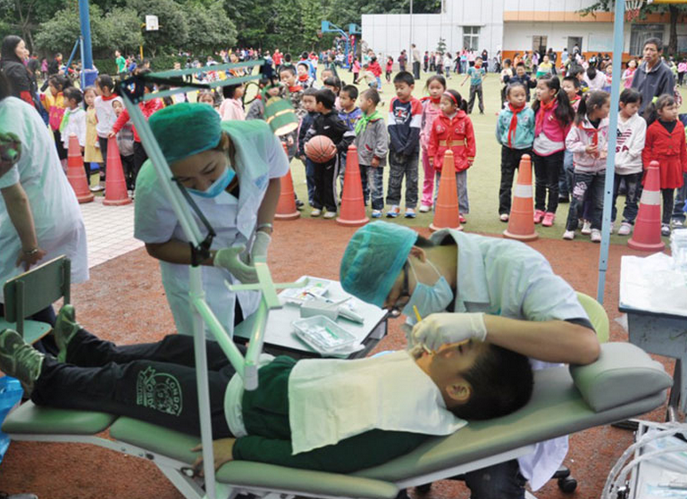 活動之所以進入校園現場開展窩溝封閉治療,即是本地口腔醫療界的首創,也可謂是無奈之舉。據院方介紹,早在今年6月就啟動了部分學校的篩查工作,真正被動員來到醫院治療的人數僅占需要治療人數的10%。為了提高家長對孩子口腔保健的重視程度,學校也對家長進行了再次宣教。為不讓符合治療條件的學生錯過較佳治療時機,醫院派出啊工作小組攜帶專業設備前往學校現場開展窩溝封閉治療。此舉也是為了方便學生及家長,盡量避免影響學習和生活。當然,學生及其家長也可以選擇到醫院接受治療,以方便進行更為全面的口腔檢查。